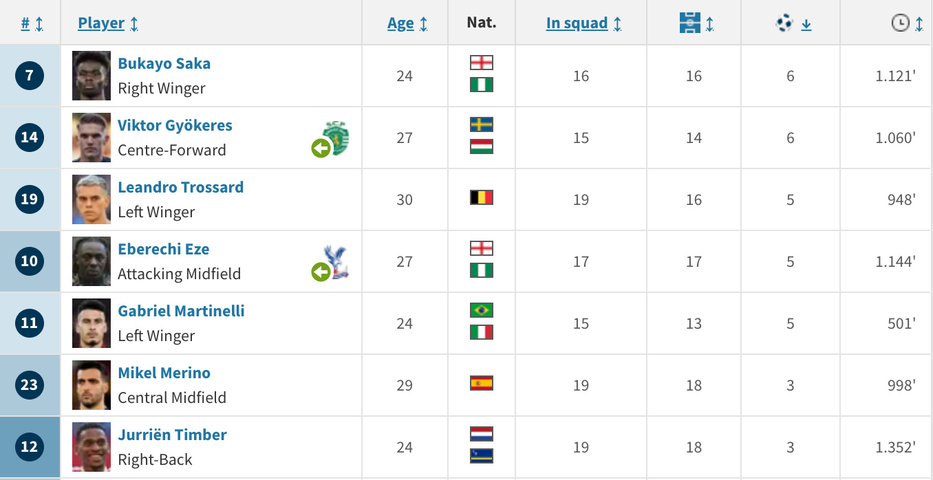 It’s quite interesting that almost every Arsenal supporter, including myself, wanted an upgrade option on our left wing and was convinced either Martinelli or Trossard would be off in the summer. They both stayed, much to my shock, alongside Eze, and now all three are among our top scorers, with five and six goals apiece.