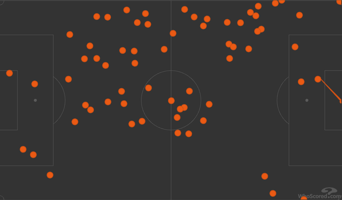 But regarding the goal, I wouldn’t lay the blame solely at their door. Firstly, Mosquera and MLS were playing on the left side in that partnership for the very first time. Secondly, it’s incredibly difficult to defend against such a wonderfully accurate ball played in behind you. Thirdly, it’s pretty much the only way to beat someone like Mosquera, a true duel winner, who was trained not for those low-probability pre-goal sprints, but for the other strengths I’ll cover later.