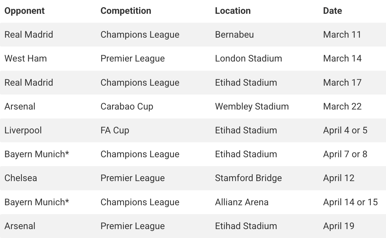 It can only be described as a brutal run. If I were a City fan, I’d be fuming at the disparity in the fixtures. And I know how that feels because we were in their shoes two seasons ago when they seemed to dodge Big Six clubs in the FA cup entirely.