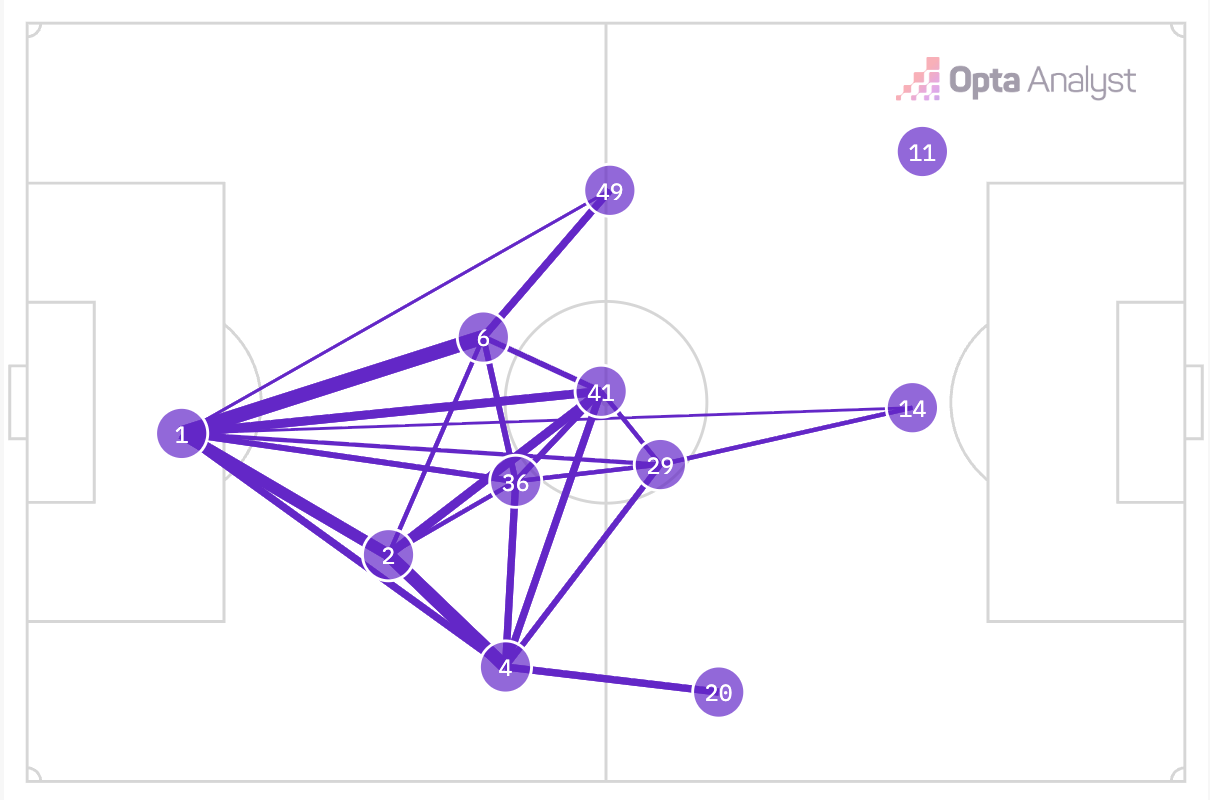 Havertz is an enabler; he reads the space well and knows exactly when to overload a zone to receive the pass and create threat from there. But he needs to receive that pass from someone, and that person was absent today. You can see for yourself just how utterly disconnected our front four was.