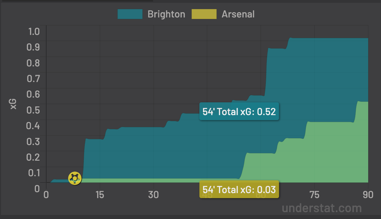 0.03 xG in the first hour. Hurzeler was fuming on the touchline and in his post-match presser. To be honest, the German coach made a bit of a fool of himself. There was no need to have a pop at Arsenal’s style of play. Any neutral could see Brighton deserved at least a point, and nobody would blame them for the performance. Moreover, looking at the results this weekend—Liverpool and United losing, City drawing—to slate Arsenal for grinding out three points seems way off the mark.