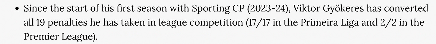 Our captain held the ball for Gyökeres. Seeing as he should have scored or been awarded a penalty moments earlier, it only felt right that he stepped up. Gyökeres dispatched it with absolute confidence. It’s in these moments you see just how good his technique is; he’s undoubtedly our best man from the spot. Some might draw parallels to that “pity penalty” Havertz took during his early struggles at Arsenal, but this was a different beast entirely. It was a crucial moment in the match—the winning goal, as it turned out—and Gyökeres already had five goals under his belt. If Viktor can just master the art of protecting the ball and turning his man, his shooting ability is going to make him a serious problem for defenders.