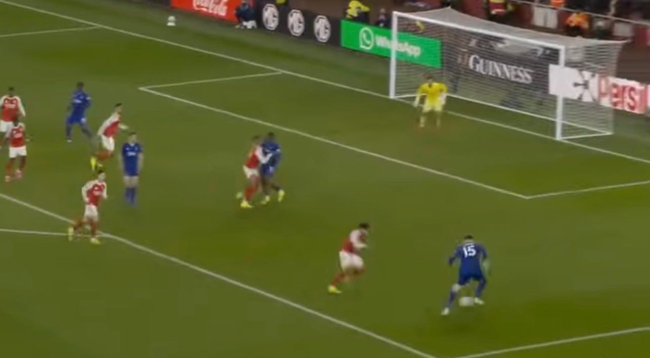 Without Havertz and Madueke, we lost our grip on the final third and looked toothless. We went from a fluid 4-3-3 to more of a 4-3-2-1. Gyokeres was playing on his own island, not really involved in the buildup but just trying to pin the centre-halves. And Martinelli isn’t usually as linked in with the play as Madueke was on the day. Instead of two players contributing to the buildup, we essentially had half a player in Gabi.