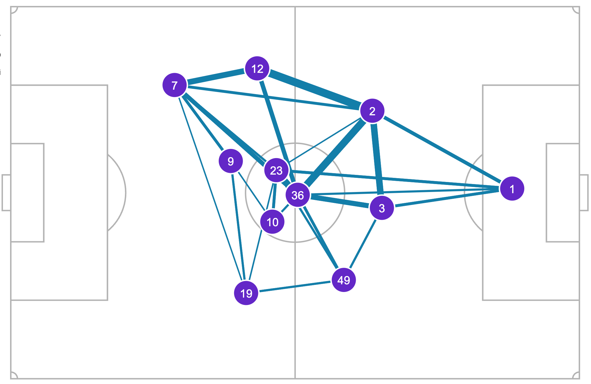 The most intriguing tactical shift was the new midfield setup—a left-sided six, a right eight, and a left ten. It was essentially a mirrored version of our usual shape with Ødegaard in the side, which the average position maps bear out.