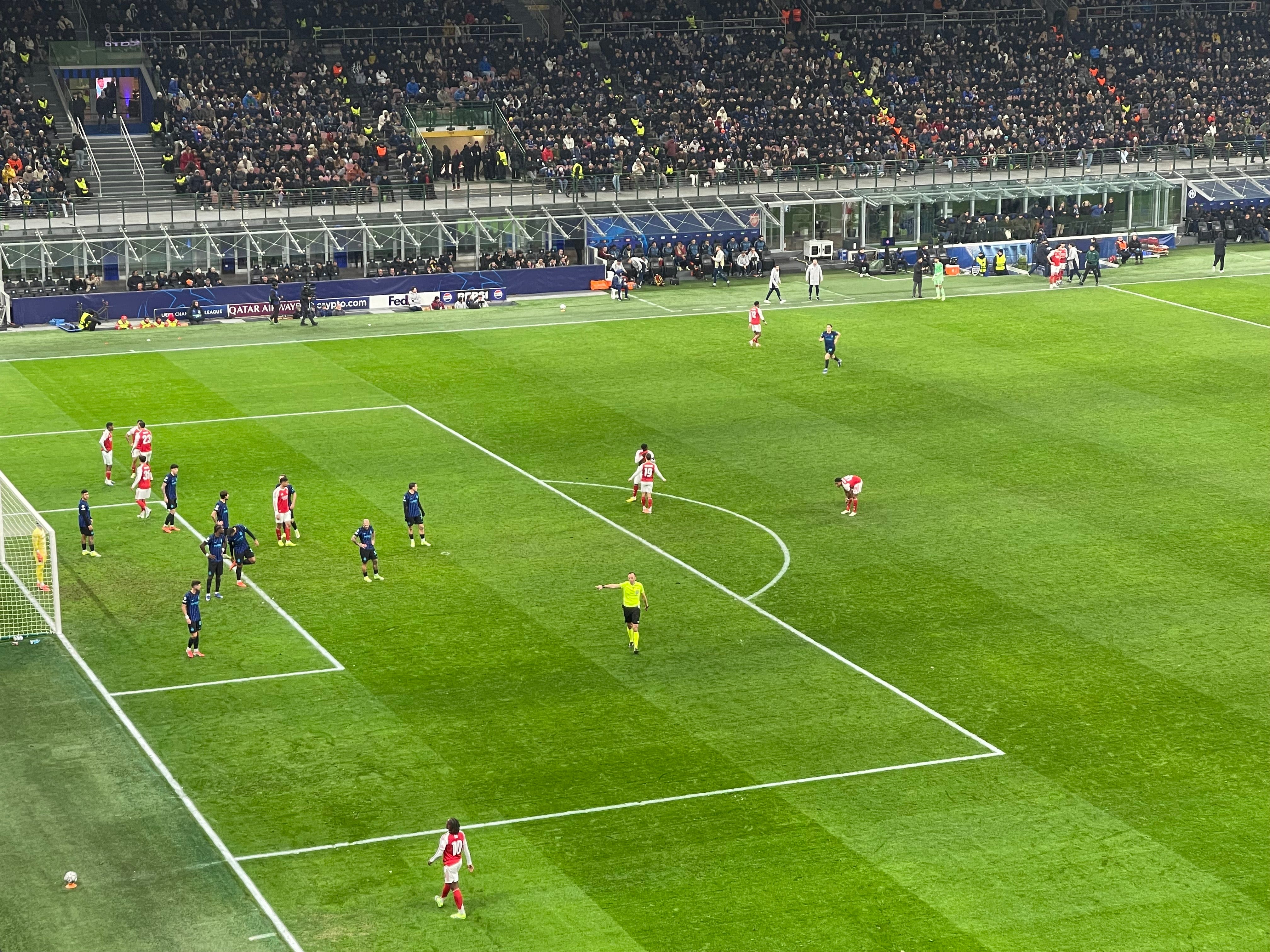 One thing that really grated in the stadium was the way the Arsenal squad was announced—it felt like someone rattling through the side effects in a pharmaceutical ad to dodge a lawsuit. I could barely parse half the names. The announcement was roundly booed, but I just wanted those loud Italians to know each name that was coming today on the pitch to punish them.