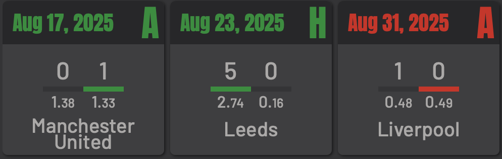 Arsenal xG in the three opening games: only Leeds stands out - understat.com