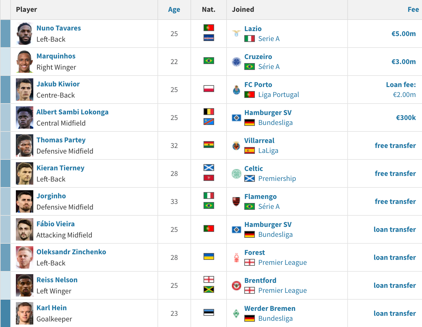 The list, surprisingly topped by a certain Nuno Tavares (who, indeed?), looks frankly embarrassing for a new sporting director. While he certainly got plenty of business done on the buying front, his performance in terms of sales merits a firm 1 out of 5 for the window.