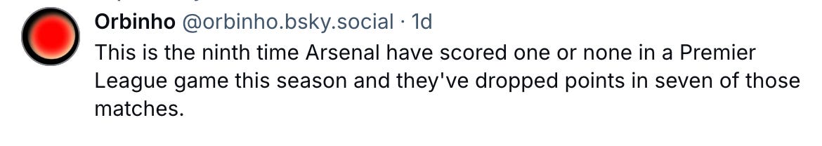 It's time that we be honest with ourselves and accept that we are not winning the Premier League title this year. We don't have electric creative players (with Saka and Nwaneri injured) and Odegaard alone if he finds form is not going to carry us to the title. It doesn’t matter that Liverpool drew today with Man United (they could have lost or drawn). With their team it’s clearly seen where goals will come from - they scored 2 today. Their loss of points came from draws 2-2, 2-2, 3-3 and 2-2. So when they will be up against a less motivated opponent, they will not concede two. Apart from scoring their chances United took Salah's counter attacking play seriously and tried to close him down as fast as possible.