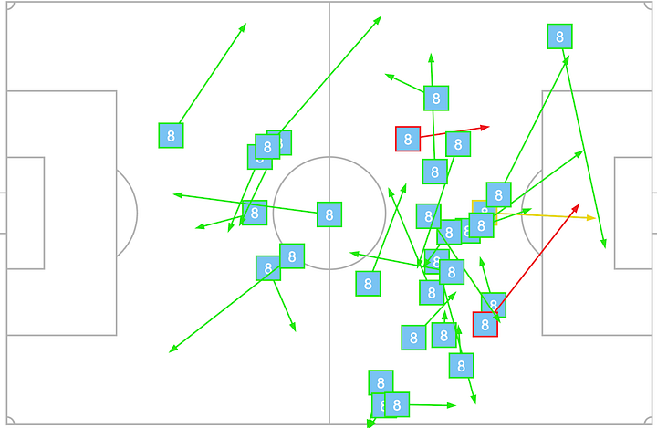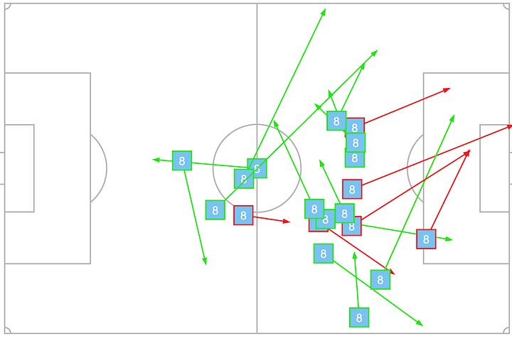 What I also find pleasing about our new number 36 is his tendency to escalate the intensity of his performances in vital moments. He becomes highly aggressive and adopts the persona of a “risk-taker.” This works well in our favour provided we have another midfielder capable of keeping the central zone together. Declan is that type of midfielder; Merino, unfortunately, is not.
